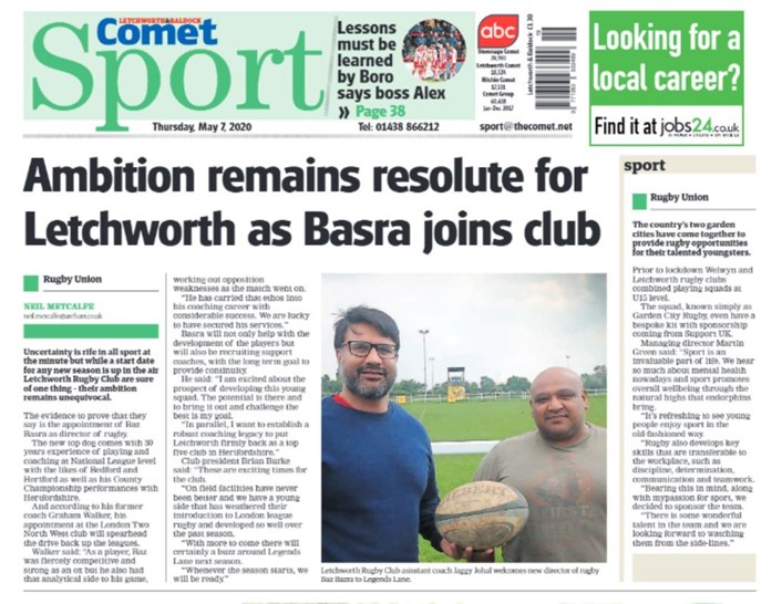 This week’s back page of The Comet … which includes a nice article about our U15s too …
